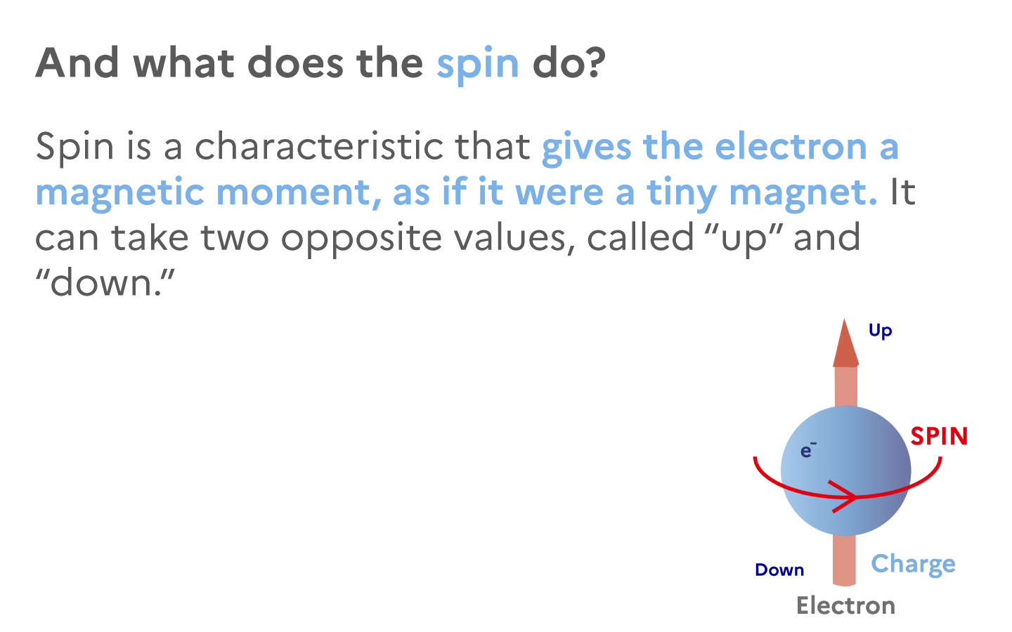 Spin can be thought of as a tiny compass attached to each electron. Depending on its orientation (“up” or “down”), it defines a magnetic state. By controlling this spin, information can be encoded and manipulated—much like with charge, but in a far richer way.